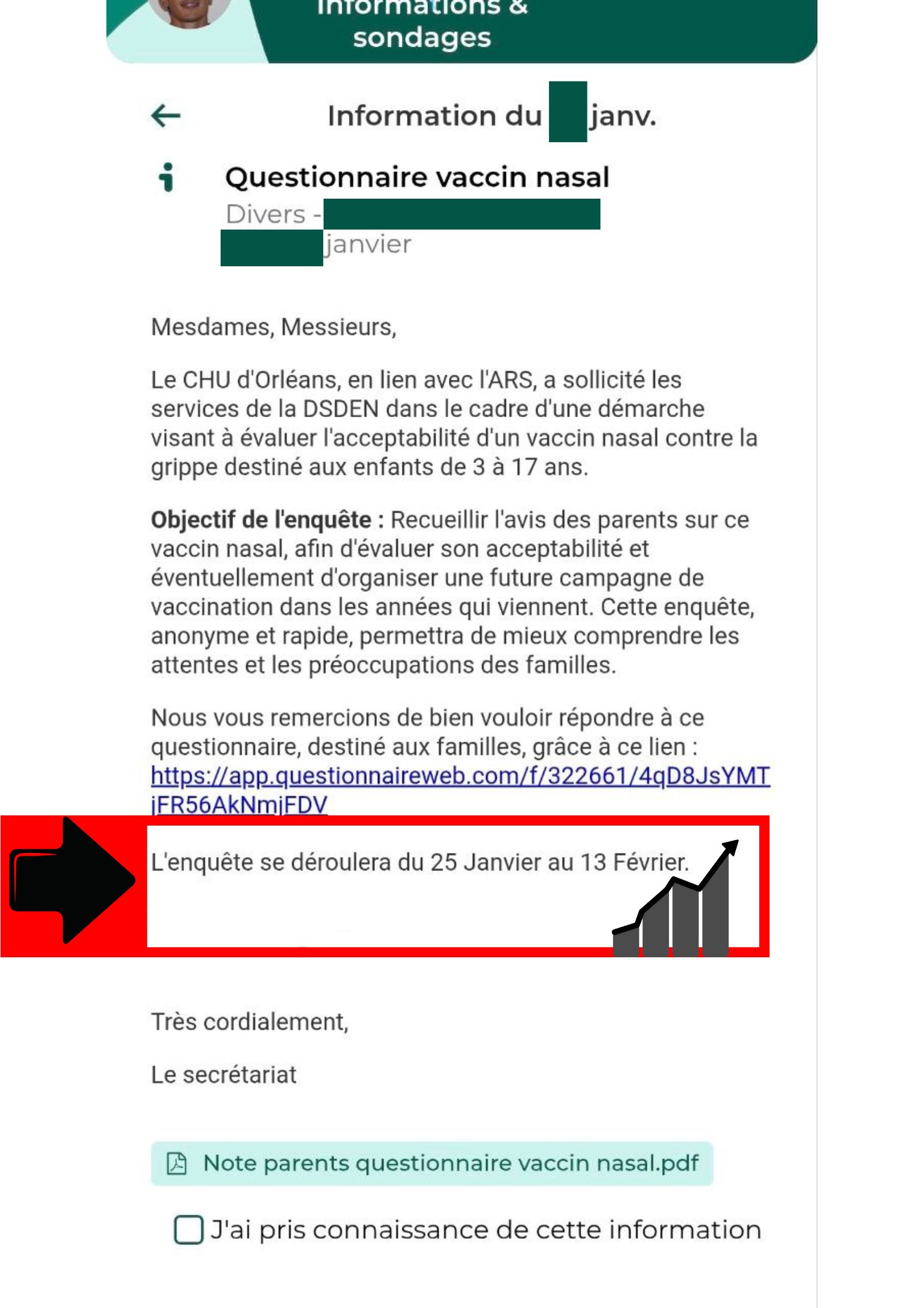 Cette enquête, soutenue par l’académie d’Orléans-Tours, le CHU d’Orléans et l’ARS Centre-Val de Loire, est principalement adressée aux parents et transmise par l’intermédiaire des établissements scolaires, via la messagerie dédiée.